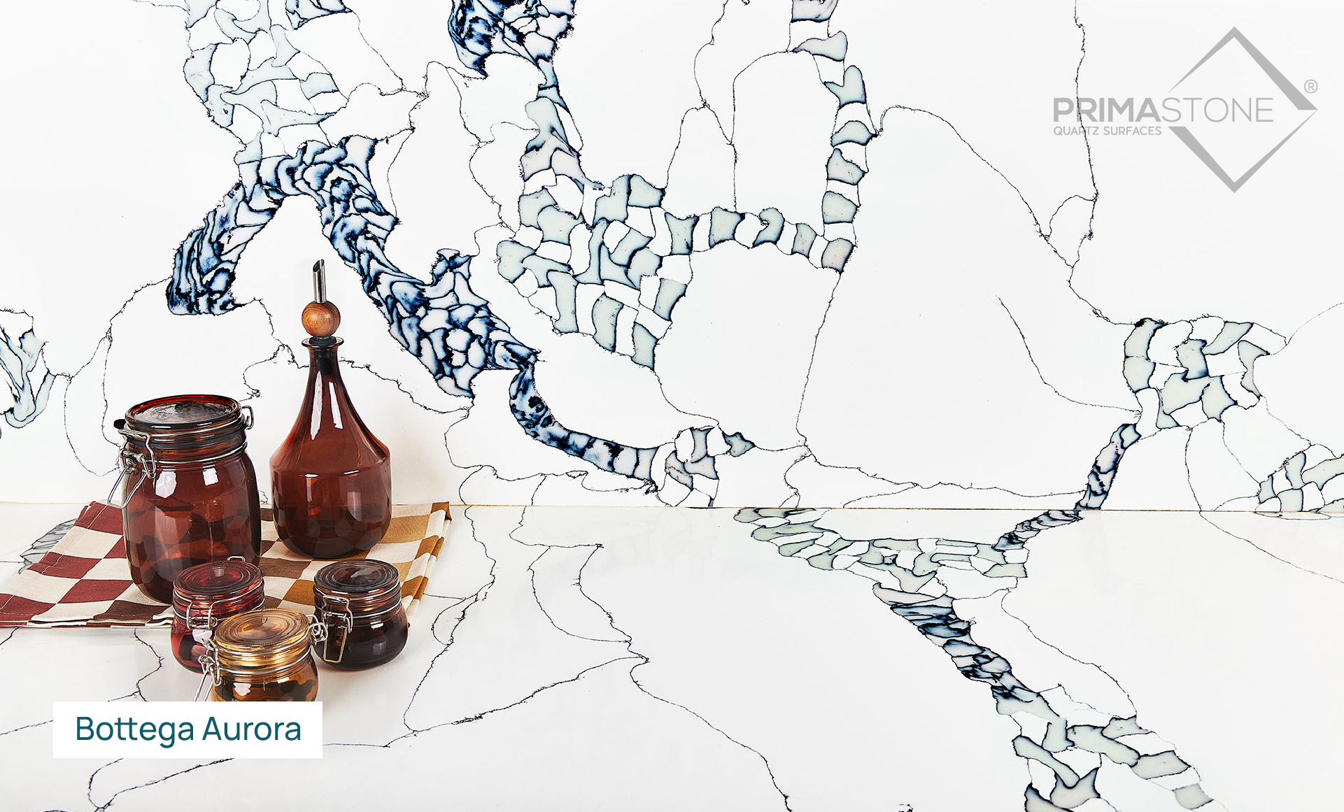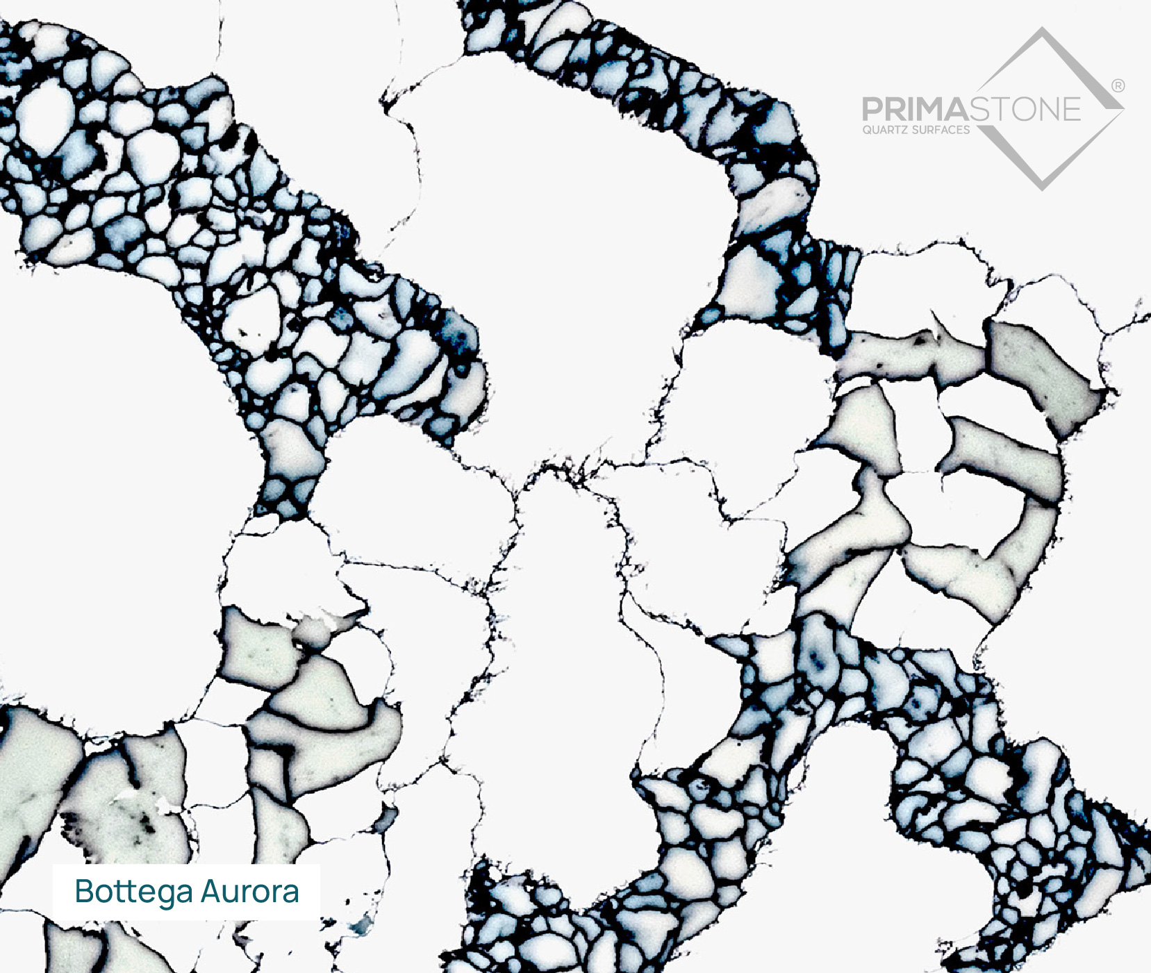 The Dove white surface serves as a neutral backdrop that allows the intricate stone patterns to stand out and be the main focal point of the design. The irregularity of the pattern and the variation in the size and shape of the clusters give the design an element of unpredictability and excitement.